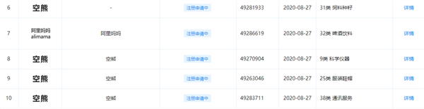值得一提的是,企查查显示,阿里巴巴于8月27日申请注册了“空熊”商标,其中国际分类包含31类 饲料种籽、9类 科学仪器、25类 服装鞋帽、38类 通讯服务、39类 运输贮藏 3类日化用品等。
