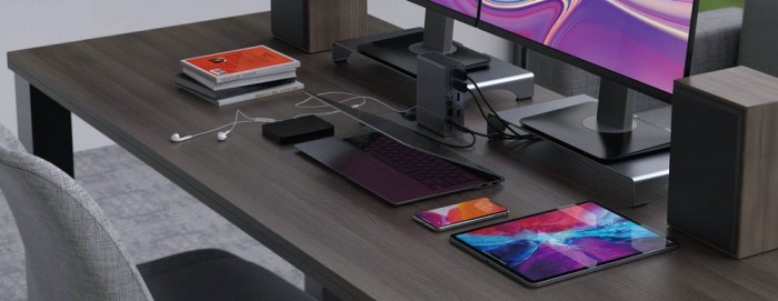 这 18 个端口包括 2 个 USB-A 10 Gbps 端口,1 个支持 18W QuickCharge 的USB-A端口、2 个 USB 2. 0 端口,1 个 USB-C 10 Gbps 端口,1 个 USB-C Power Delivery 端口(具备100W输出),2 个 4K 60Hz HDR HDMI 端口, 1 个 DisplayPort 4K 60Hz 端口,1 个千兆以太网端口,1 个 SD 和 Micro SD UHS-II 读卡器,数字同轴和光纤Toslink音频, 1 个3.5mm音频插孔, 1个 VGA 端口,以及 1 个驱动集线器的直流电源端口。