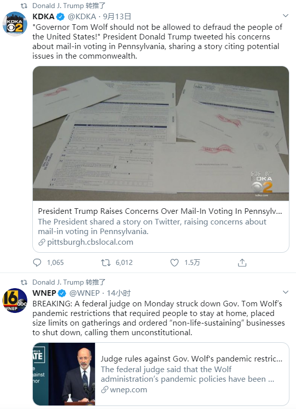 特朗普显然对Stickman的裁决结果很满意,因为他在周一晚上发推文庆祝了这一裁决结果,以及发布其他近二十条与该州州长、民主党人Tom Wolf如何管理该州事务有关的帖子。