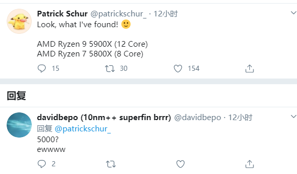 AMD已经官方宣布,将在10月8日正式发布基于Zen 3新架构的下一代锐龙桌面处理器,但时至今日,仍然缺乏确切的架构细节、产品规格。软件工程师Patrick Shur曝料称,他找到了两颗新锐龙,一是锐龙9 5900X,12核心,二是锐龙7 5800X,8核心。