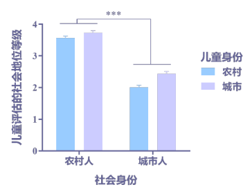 农村和城市儿童对农村人和城市人社会地位的评估 (*** p < 。001)(图源:作者提供)