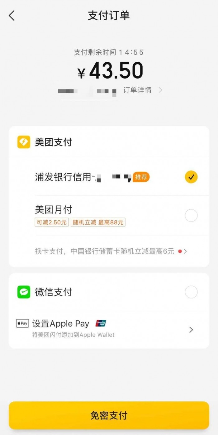 今年下半年开始,美团开始引导用户绕开支付宝和微信等第三方支付,使用美团支付。在美团外卖提交订单的时候,默认首选的是一个“极速支付”按钮,那就是美团支付,只有选择普通支付,才会切换到多种支付方式页面,但优先的还是美团支付,其次才是微信支付,支付宝则被折叠。有用户向深燃财经反映,他在开通美团支付后,支付宝支付就从选项中消失了。