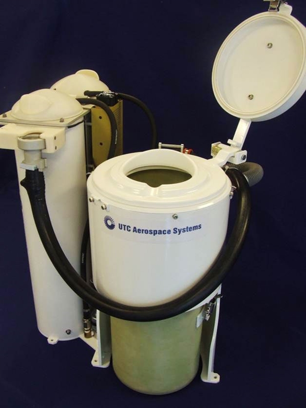 为了确保不会乱飘,没有重力的话就得靠外力,UWMS马桶采用的是3D打印的钛合金风扇分离器,可以产生强大的吸力将尿液和便便吸入马桶。