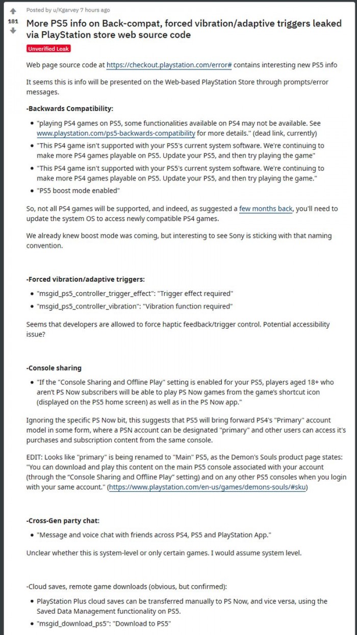 基于 PlayStation Store 网站源代码,PlayStation 5 向下兼容、账号管理等更多细节被曝光。Reddit 用户 Kgarvey 查看了该网站的源代码,发现了一些错误信息。这些信息暗示通过固件更新,未来会有更多 PS4 游戏可以在 PS5 上玩。此外在这些代码中还发现了 Boost Mode。