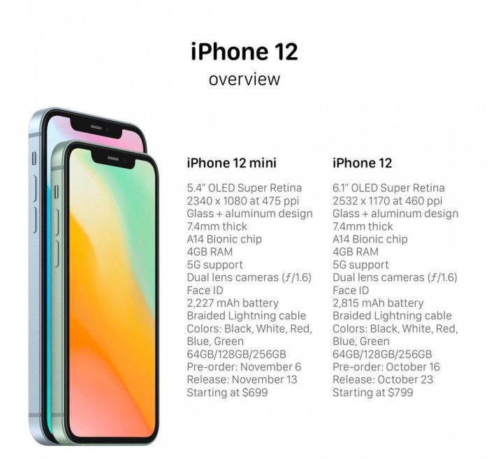 起售价格为 799 美元,将于10月16日或17日接受预订,并于10月23日或24日发售。双摄,还是广角+超广角,ƒ/1.6;64G/128G/256G 三种存储选项,颜色有黑色、白色、红色、蓝色、绿色