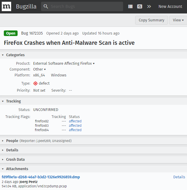 第三个问题是 Mozilla 正在调查的 Firefox 与赛门铁克 / Windows Defender 等安全防护软件存在的不兼容问题(可能导致浏览器崩溃)。