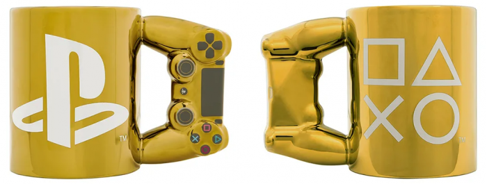 PlayStation推出的官方授权周边第一弹于今天(10月30日)正式发售,包括握把是手柄形状的马克杯、以及手柄造型的夜灯和闹钟,还有印着PlayStation图标的扑克牌等。