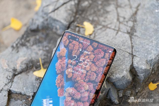 手机正面配备了一块6.76英寸88°超曲环幕屏,刘海消失了,取而代之的是来自P系列的前置双打孔摄像头。