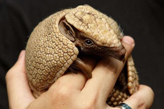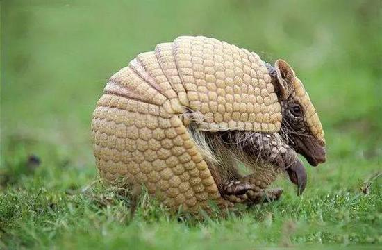这就是犰狳(qiú yú),可可爱爱,奇奇怪怪,少数几种有铠甲保护的哺乳动物。不同于穿山甲的是,它们的铠甲是分体式的,而穿山甲的铠甲是套连体衣。虽然,犰狳有着甲壳和掘地等多种逃生技能,仍有狗、美国山猫、熊和郊狼等多种天敌威胁。如今它们最大的天敌却是人类的汽车,因为它们在马路上遇到危险时会下意识地跳跃或团成团,反而惨遭无情的汽车碾过,使得美洲的公路上遍布犰狳的尸体。再加上能适应的温度较窄,所以犰狳不幸成为了濒危物种。