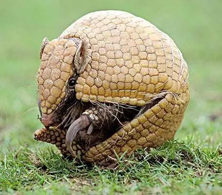 在美洲的树林里,经常看到一类非常独特的生物。它们身披铠甲,却形如老鼠,穿梭在树林中,当遇到危险时会抱住自己的尾巴,像西瓜虫一样团成球,使得自己很难被拽出来,用铠甲面对危险。它们也会渡河,会奔跑,会土遁,会伪装(长相如下图所示)。