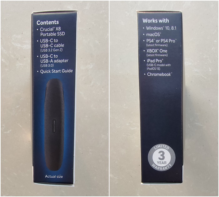 接口方面,英睿达 X8 选用了流行度和兼容性都极高的 USB 3.2 Gen 2 接口,辅以三年有限质保。