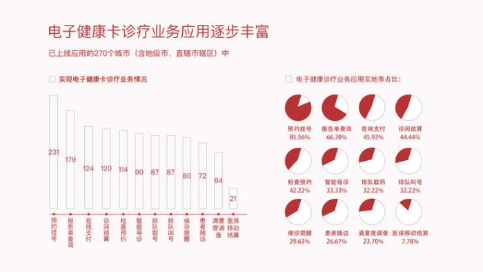 例如,通过后台数据共享,实现电子社保卡和电子健康卡挂号、诊断、检查检验、取药和医疗费用结算等服务的全流程应用。