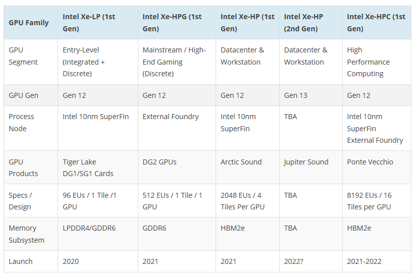Intel Xe架构独立显卡正在陆续走来:Xe LP低功耗的轻薄本专用Iris Xe MAX已经发布并上市,针对游戏市场的Xe HPG、数据中心市场的Xe HP两个高性能架构将在明年成品,最顶级还有用于高性能计算的Xe HPC。Xe HP架构首个产品代号Arctic Sound,Xe HPG首发的则是DG2系列。