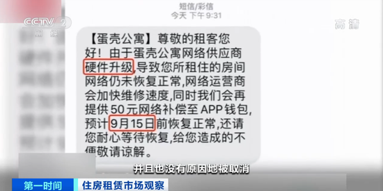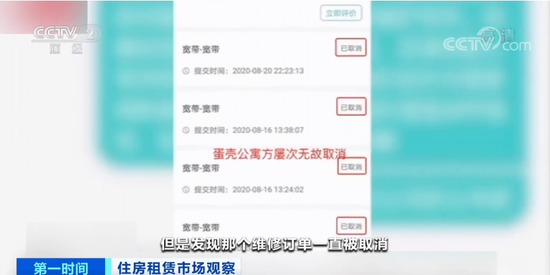 深圳蛋壳公寓租户 白女士:刚开始我们以为只是网络出现了技术问题,我们在蛋壳公寓的App提交了维修订单,但是维修订单一直被取消,并且也没有原因。