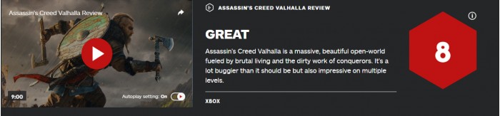 《刺客信条:英灵殿》媒体评分已经出炉,IGN给出8分好评,MTC上目前收录了14家媒体评分,PS4版游戏平均分为84分。《刺客信条:英灵殿》有一个大型美丽的开放世界,由残酷的生活和征服者的肮脏工作所推动。虽然有很多应该的bug,不过它在其他多个层面上则给我们留下了深刻的印象。