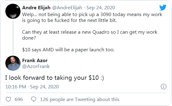 网友扒出来赌约并质疑5900X就是这么一款纸面产品,Fran Azor顿时火大,他强调AMD首批发出了成吨的处理器,网友得明白供不应求和没货可卖的区别。
