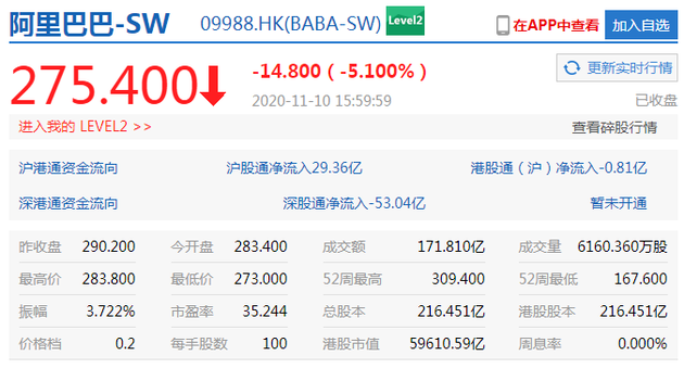 11月10日下午消息,今日港股科技股大跌,截至收盘,美团跌10.80%报299.00港元,股价跌破300港元关口;京东集团跌8.89%报330.00港元,创其有记录以来盘中最大跌幅;阿里巴巴跌5.10%报275.40港元。另外,腾讯集团跌4.09%报597.00港元,小米跌4.69%报24.35港元。