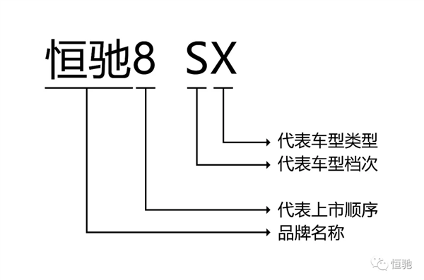 举例来看,如恒驰推出的第8款车为SUV车型,市场售价为35万元,属于“超豪华SUV”,则命名为“恒驰8 SX”。
