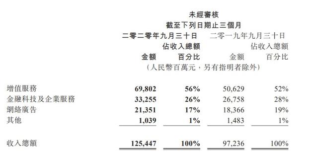 财报显示,腾讯的增值服务业务在第三季度收入698亿元,同比增速为38%,在总收入中占比为56%;受《和平精英》及《王者荣耀》在内的国内及海外手游收入增长的推动,网络游戏收入增长45%至414亿元,日均收入约4.5亿元,是增值业务强劲增长的第一驱动力。