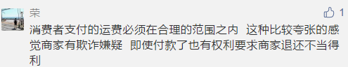 客服表示,商家的运费设置并不违规,消费者可以自行选择购买与否。但是在付款前,还是要擦亮眼睛,慎重一些。