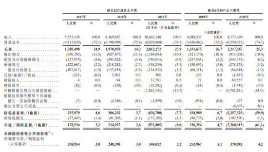 收入不断增长,2019年京东健康盈利出现亏损。数据显示,2017年、2018年及2019年,京东健康分别实现盈利1.785亿元、盈利2.149亿元、亏损9.718亿元。分别截至2019年6月30日、2020年6月30日止6个月内,京东健康分别盈利2.36亿元、亏损54亿元。
