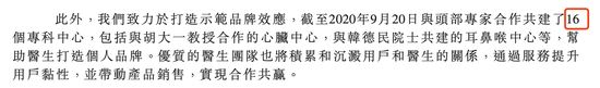 截至2020年9月20日,京东健康在全国与知名专家机构合作共建了16个不同疾病领域的专科中心。