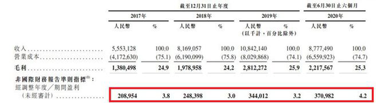 按照非《国际财务报告准则》,京东健康从2017年至2020年上半年公司的净利润分别为2.1亿元、2.5亿元、3.4亿元和3.7亿元,盈利能力持续增长。