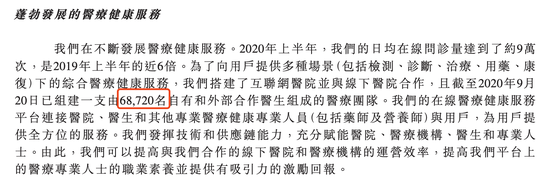 截止2020年9月20日,京东互联网医院平台上有超过68720名自有和外部医生;2020年上半年,京东健康的日均在线问诊量达到了近9万次。