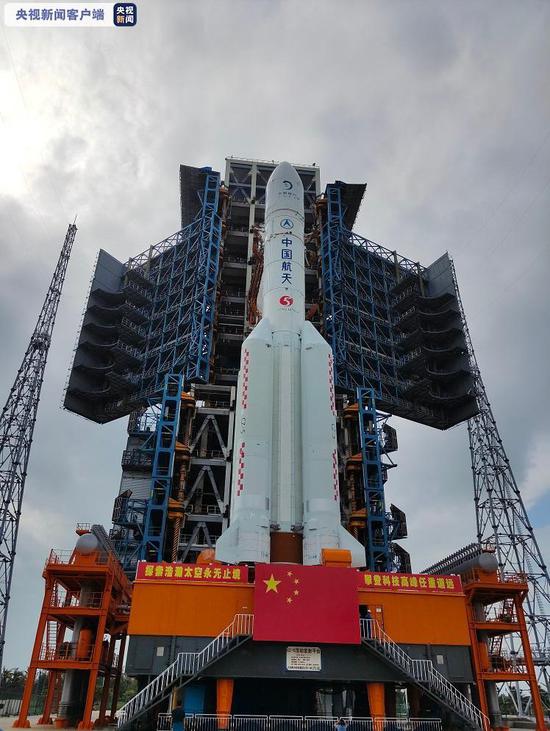 记者从国家航天局获悉,11月17日,长征五号遥五运载火箭和嫦娥五号探测器在中国文昌航天发射场完成技术区总装测试工作后,垂直转运至发射区,计划于11月下旬择机实施发射。