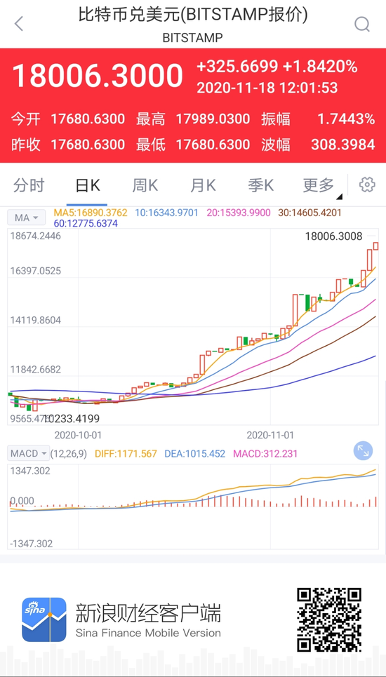 比特币站上18000美元/枚,为2017年12月以来首次。历史数据显示,在2017年12月比特币的价格上涨至2万美元附近时,比特币的市值达到3288.9亿美元。而在周三比特币的价格上涨一度突破18000美元,市值则突破了3300亿美元,创下历史新高。
