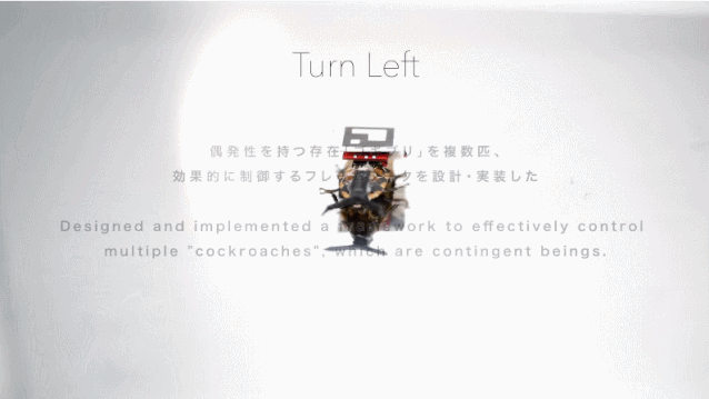 研究者设计并执行了一个有效控制多个蟑螂的框架,下图中蟑螂向左/ 右转动: