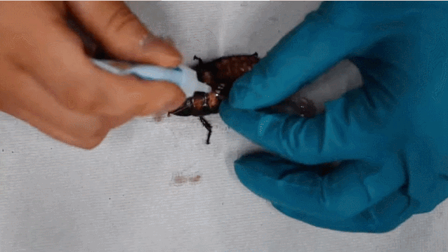近日,日本筑波大学的研究员在活体蟑螂的背部安上了电极、芯片、电池等设备,通过刺激蟑螂触角的神经来控制其活动。