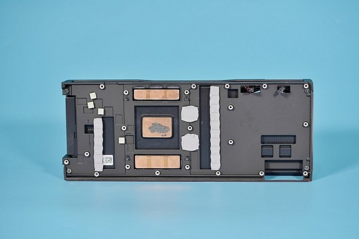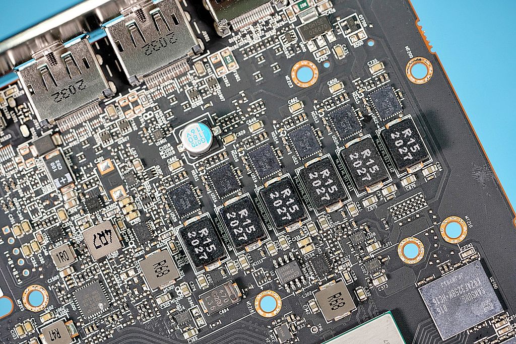GPU核心周围有8颗三星GDDR6显存,总容量16GB。与RX 6800 XT一样,RX 6800同样也是整块均热板设计,没有热管,17相供电电路。