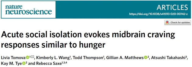 换句话说,社交隔离后,大脑对社交产生的渴求,就跟人在饿肚子后对食物的渴求是一样的。
