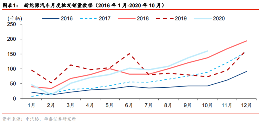 与欧洲市场形成鲜明对比的是,在中国新能源汽车市场方面,华泰证券和中汽协的数据显示,10月,国内新能源乘用车销量为14.8万辆,同比大增105%,其中纯电动车型销量12.2万辆,同比大幅上升113%,延续了下半年以来的强势增长格局。