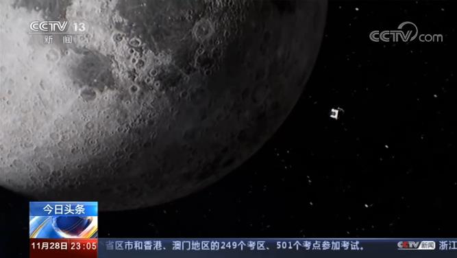 11月28日,经过约112小时奔月飞行,嫦娥五号探测器在距月面400公里处成功实施3000牛发动机点火,约17分钟后,发动机正常关机。根据实时遥测数据监视判断,嫦娥五号探测器近月制动正常,顺利进入环月轨道。