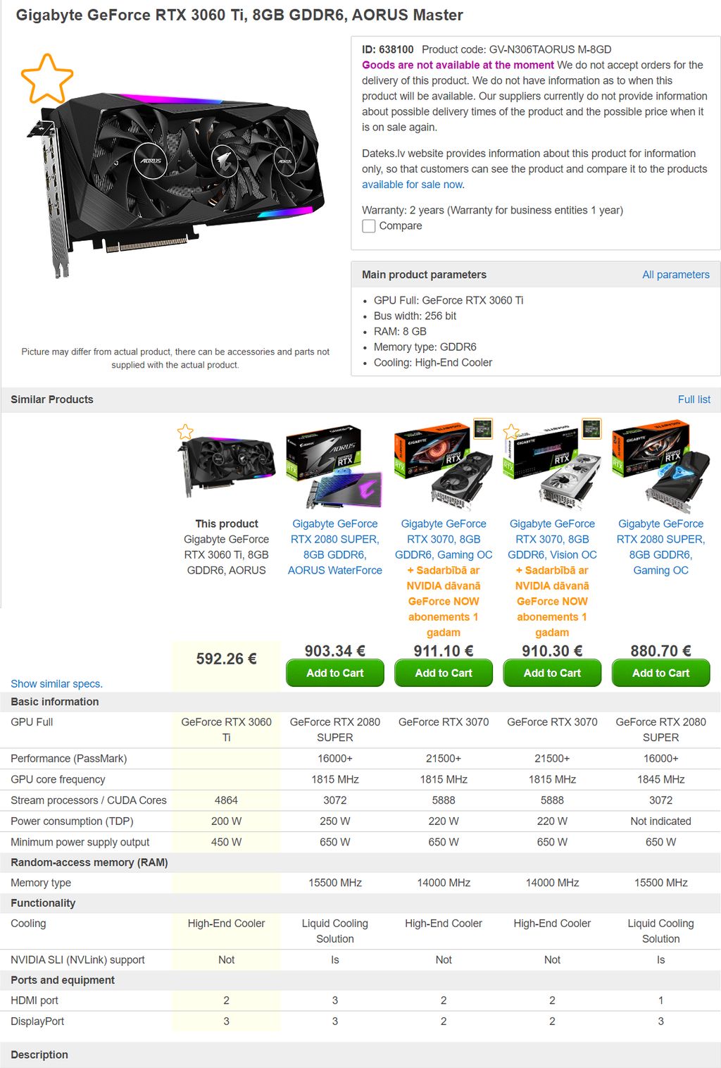 ● Gigabyte RTX 3060 Ti AORUS Master – 592.26 EUR