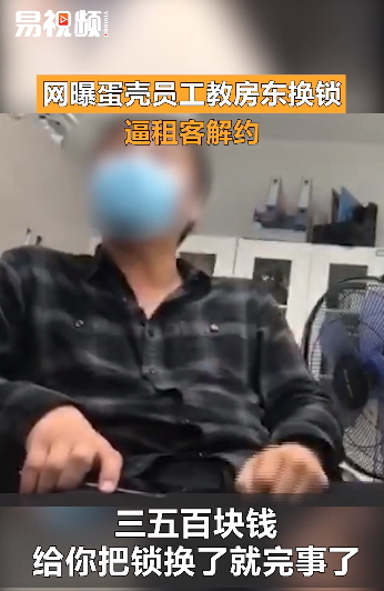 网易旗下的易视频发布了某位自称蛋壳公寓房东的视频,宣称在向蛋壳咨询解约的时候,蛋壳工作人员表示要租户先解约,他给房东的建议就是去把锁换了。