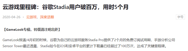 如果大家都朝着这么方向去努力,还真没准就造出了玩家们的理想国。谷歌的 Stadia 游戏平台就在积极布局, 5 个月用户就突破了百万。
