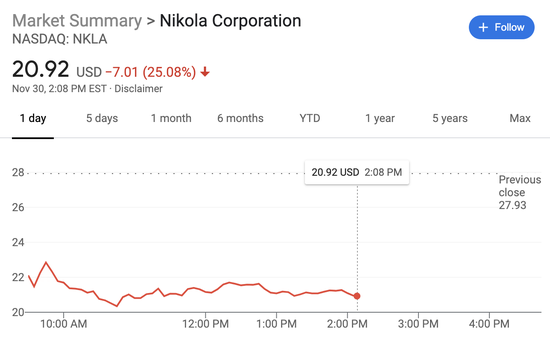 做空机构Hindenburg Research随后发布研报,称Nikola是一个“错综复杂的骗局”,建立在Trevor Milton职业生涯中超过50个谎言之上。Nikola的对外宣传误导投资者,谎称供应商的电动汽车重要技术为自行研发的技术。美国证券交易委员会(SEC)以及美国司法部已经展开调查。Nikola创始人兼前执行董事长特雷弗·米尔顿(Trevor Milton)已经离开了公司。