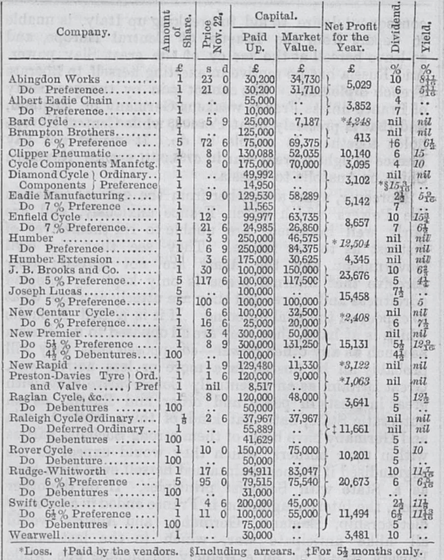 1896年发行的自行车、内胎和轮胎公司的总认购资本超过1700万英镑,约为当年英国发行股票总价值的八分之一。