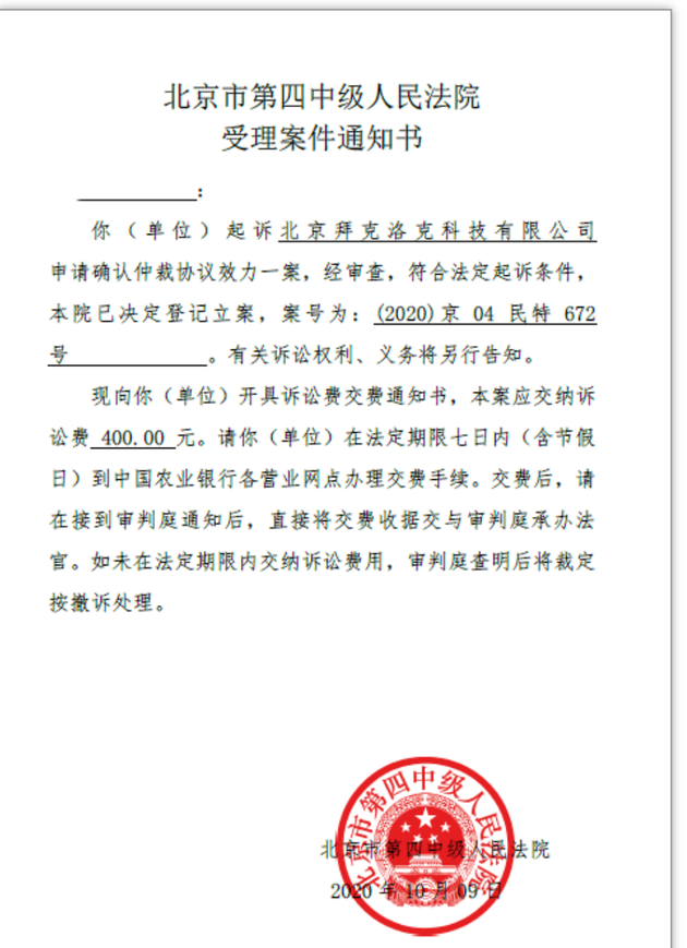 12月8日,北京四中院作出裁定,驳回小肖的申请。