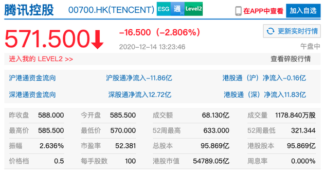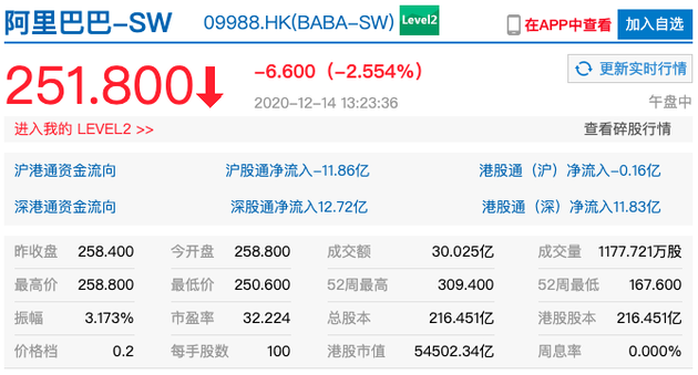 12月14日午间消息,阿里巴巴、腾讯控股午后跌超2%。截至发稿,阿里巴巴跌2.56%报251.80港元,腾讯控股跌2.80%报571.50港元。