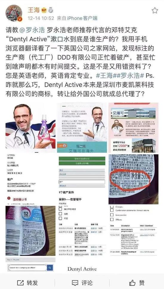 “英国上市公司资本只有25万英镑?逻辑上是说不通。罗永浩最有力的证据是放出英国工厂生产的照片以及海关清单。”王海告诉《IT时报》记者。