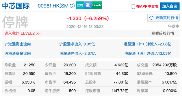 12月16日午间消息,中芯国际在港交所恢复交易,复牌后跌超6%,A股现跌超7%,公司公告称已知悉并正在核实核实联席CEO梁孟松辞任意愿。12月15日晚,中芯国际官宣,蒋尚义获委任为中芯国际董事会副董事长、第二类执行董事及战略委员会成员,其任期自2020年12月15日起至2021年股东周年大会为止。与此同时,市场传言称,中芯国际联合首席执行官兼执行董事梁孟松在大会现场提出辞职。