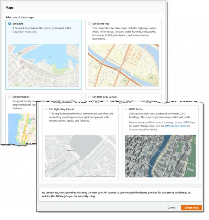 AWS 今天宣布了 Amazon Location 的预览版。这是一项全新的服务,适用于那些希望在其 Web 和移动端应用程序中添加位置功能的开发人员。基于 Esri 和 HERE 技术公司提供的地图数据,该服务了包括定位追踪、地理围栏在内的大部分地图功能。不过该服务并没有提供导航功能。