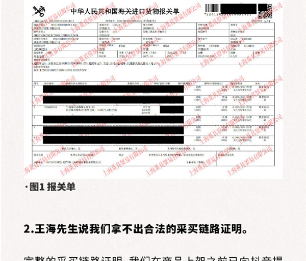 杭州云上买到信息技术有限公司表示,王海质疑的报关单为假是一场误会。