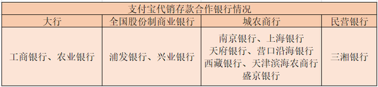 除民营银行外,支付宝还与国有大行、股份制银行合作,如工行、农行、浦发银行、兴业银行,但目前这些银行暂无代销产品在售。