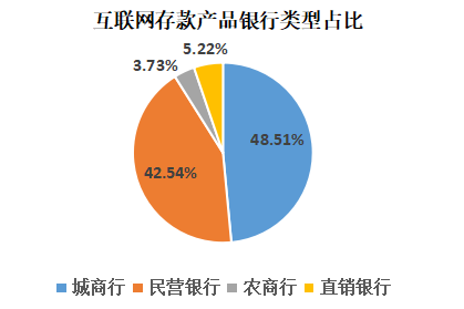而截止11月底,在京东金融、度小满、支付宝三家主流互联网平台上在售的互联网存款产品中,其中城商行共有65款产品,占比48.51%,民营银行共有57款产品,占比42.54%,直销银行7款产品,占比5.22%,农商行共有5款产品,占比3.73%。