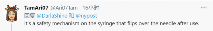 “这是注射器上的一个安全装置,使用后它会翻转针头的。”